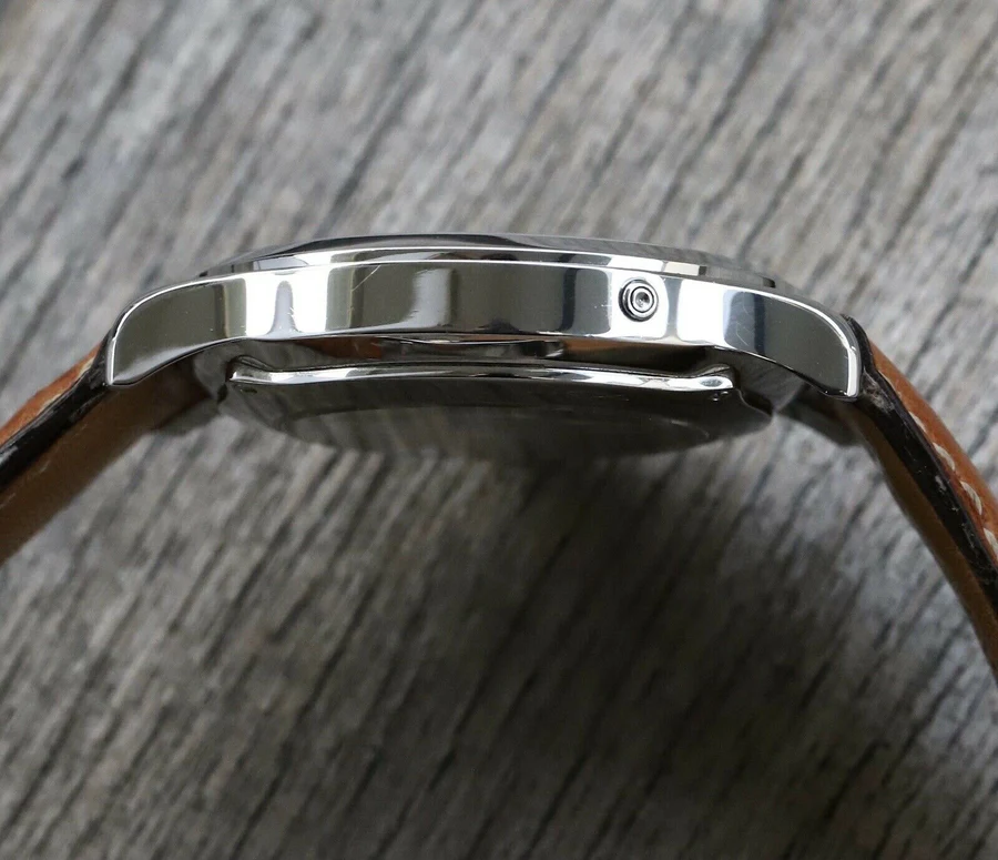 Currently mounted on an Italian Colareb Siena leather strap with tang buckle. No other accessories are included.