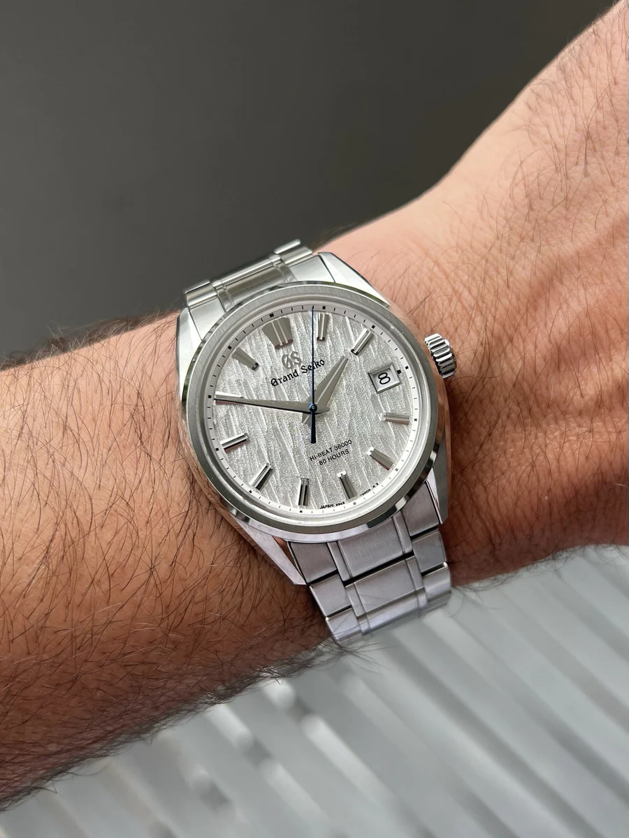 Housed within this 40mm steel case is the absolutely spectacular White Birch dial, echoing the dynamism of the white birch tree forests near the studio in Shizukuishi, where all Grand Seiko mechanical watches are crafted. It looks amazing in photos, and even better in person.